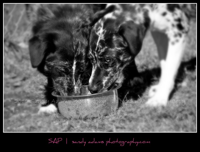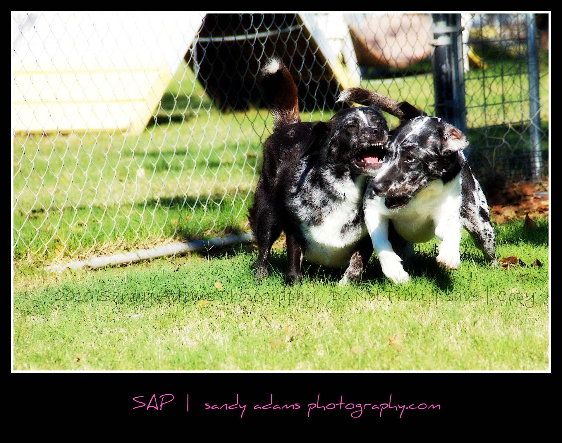 These adorable two pups are just the sweetest sisters ever! I had the honor of photographing them for their “mom” over the Thanksgiving break while they were boarded at The Pet Palace. Aussie and Sadie were adopted from the Pearland SPCA when they were 3 months old and they are now 2.5 years old. The sisters are a mix of Catahoula Leopard and Australian Shepherd with Aussie (more black fur) having more Shepherd in her and Sadie (more white fur) more Catahoula in her. Interesting note is Sadie has a half blue eye! (her left eye).