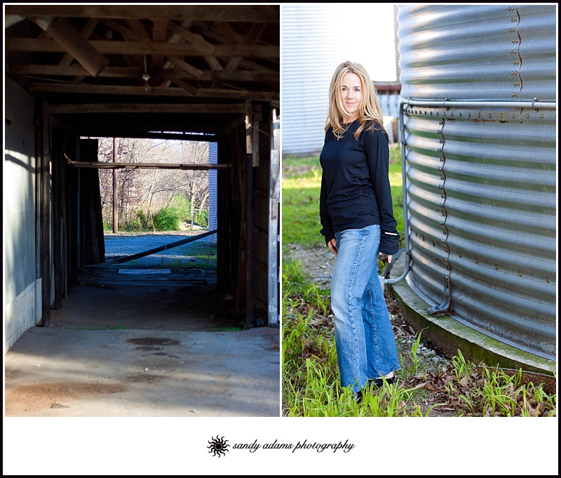 It was a cool, crisp afternoon in a small Tennessee town with just a hint of late afternoon sunshine. A California girl, who grew up spending every summer and some holidays in this small, quaint town, was visiting family for Thanksgiving. We met at an abandoned feed plant on the outskirts of town for the photo shoot. Our shoot lasted all of 15 minutes then it was back to turkey, dressing and good ole’ homemade apple pie 🙂