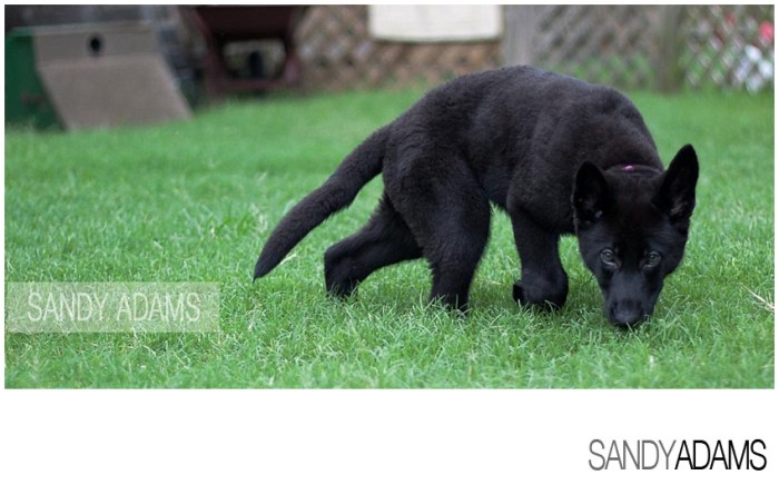 Pascha was born in Canada and was just 8 weeks old (12 lbs) when she made her first flight to Houston. She is a pure bred German Shepherd and yes she is completely black. What you can not tell from the photos is that she is has the most incredibly soft fur I have ever felt – she is like the softest cotton ball ever.