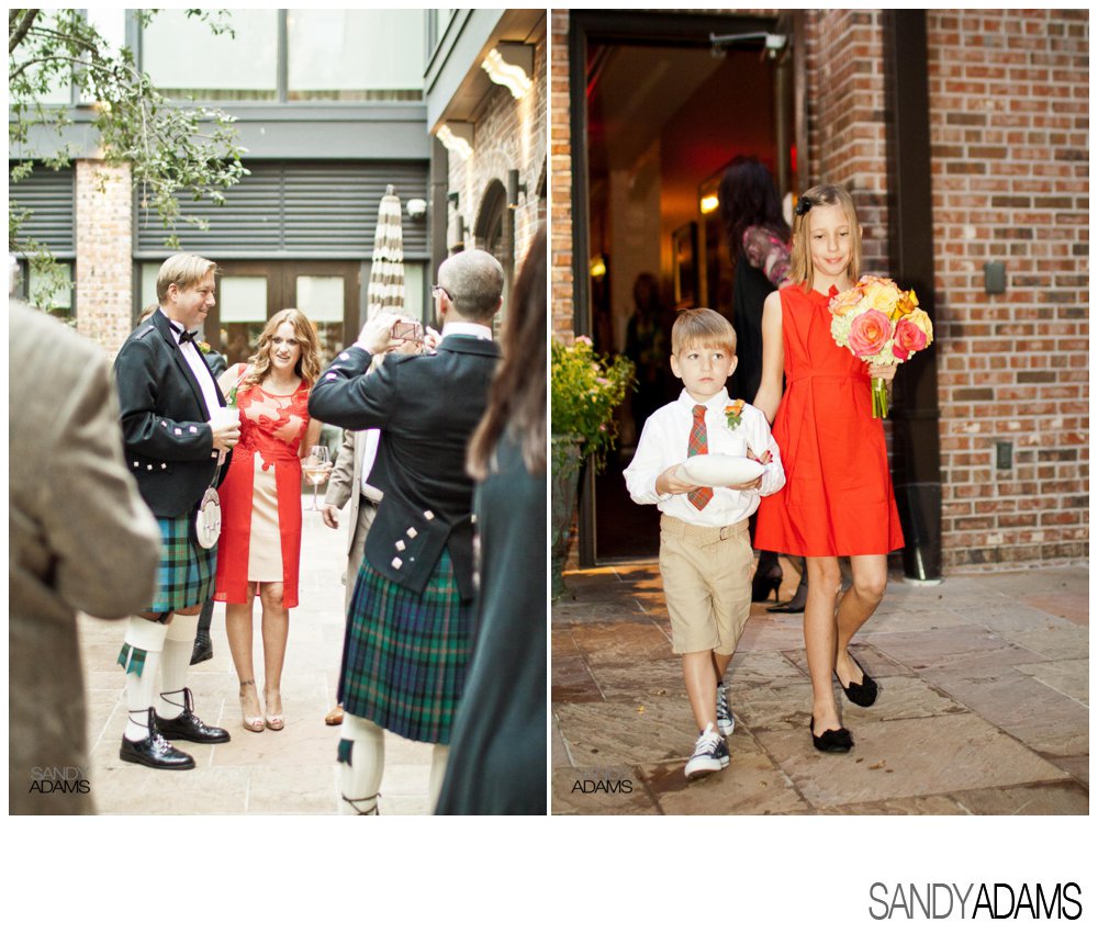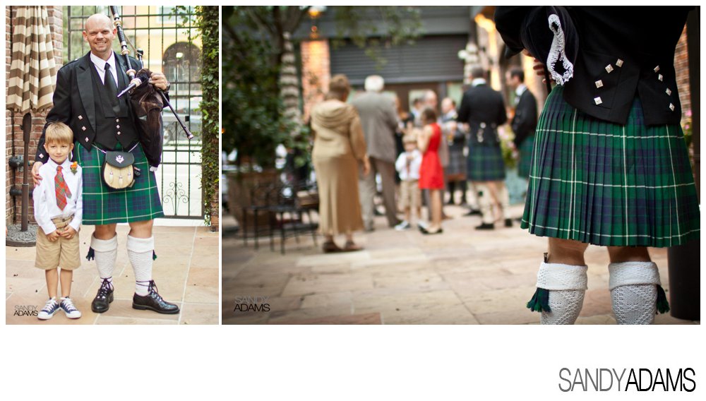 On a beautifully hot and humid night in early October, the wedding of the Scotsman and his Oklahoma bred bride was held at the elegant Brennan’s Restaurant in downtown Houston. The rain had stopped late in the night before, but the humidity stayed around well into the evening. A large entourage from Scotland and other countries had arrived in town earlier in the week, as well as the bride’s mother. The groom wore his kilt along with the other Scotsmen at the wedding. The bride wore a beautiful 50s style cocktail length dress with an elegant pillbox style hat and veil. There was even a bagpipe player… Guests were treated to a beautiful sit down dinner with lots of fun and many toasts. It was a special night with family and friends, old and new and a perfect way to start a new blended life together.