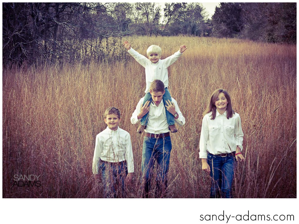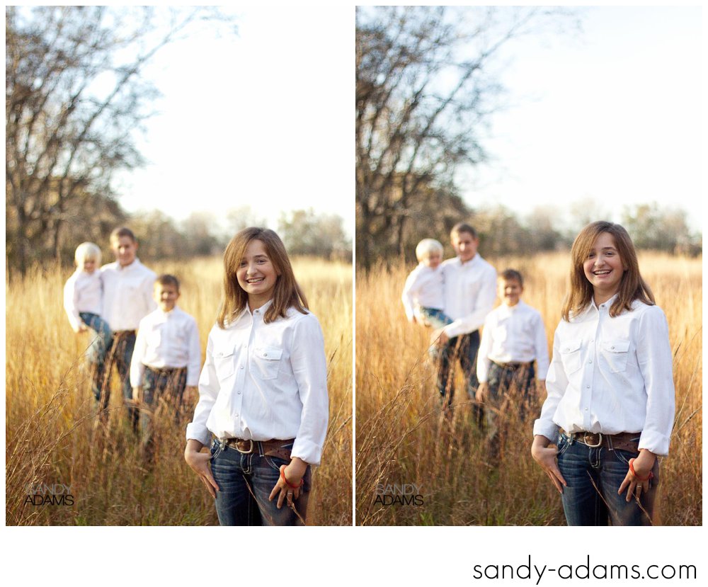The request was simple… mom and kids wanted to give dad a large canvas portrait of all the kids for Christmas. The task not so simple. With just 2 weeks until Christmas, a crazy schedule for all the kids, and the delivery time for the canvas there was only one day and one hour that I could get the shoot completed. Oh yeah and I had to include the two family dogs. It was a Thursday and sundown was 5:30pm. All of the kids had different schools so I found a field near their house. We started at 4:00 pm and went quickly through all the scenarios that I had planned out. With dark fast approaching and the little one growing very tired, we were almost out of time. The very last image that I shot ended up being the one they chose for the canvas!