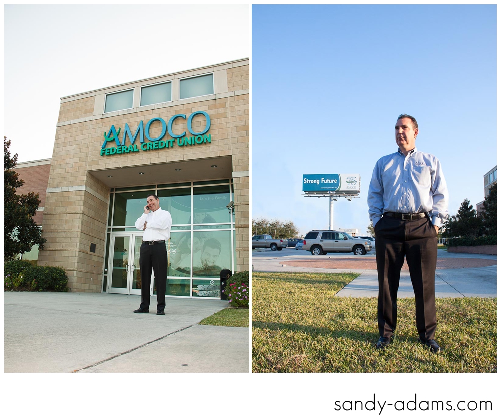 The January 2013 issue of League City’s Change Magazine featured a story on Shawn Bailey, President/CEO of Amoco Federal Credit Union. In the article, Shawn discusses how his job, childhood and family have changed his life along the way. I photographed Shawn last November on site at one of the Amoco branch locations. It was a slightly hot afternoon with plenty of sun, as is always the case in Houston. Shawn’s wife and step-son came along to act as my assistants. It was a fun-filled afternoon indeed!