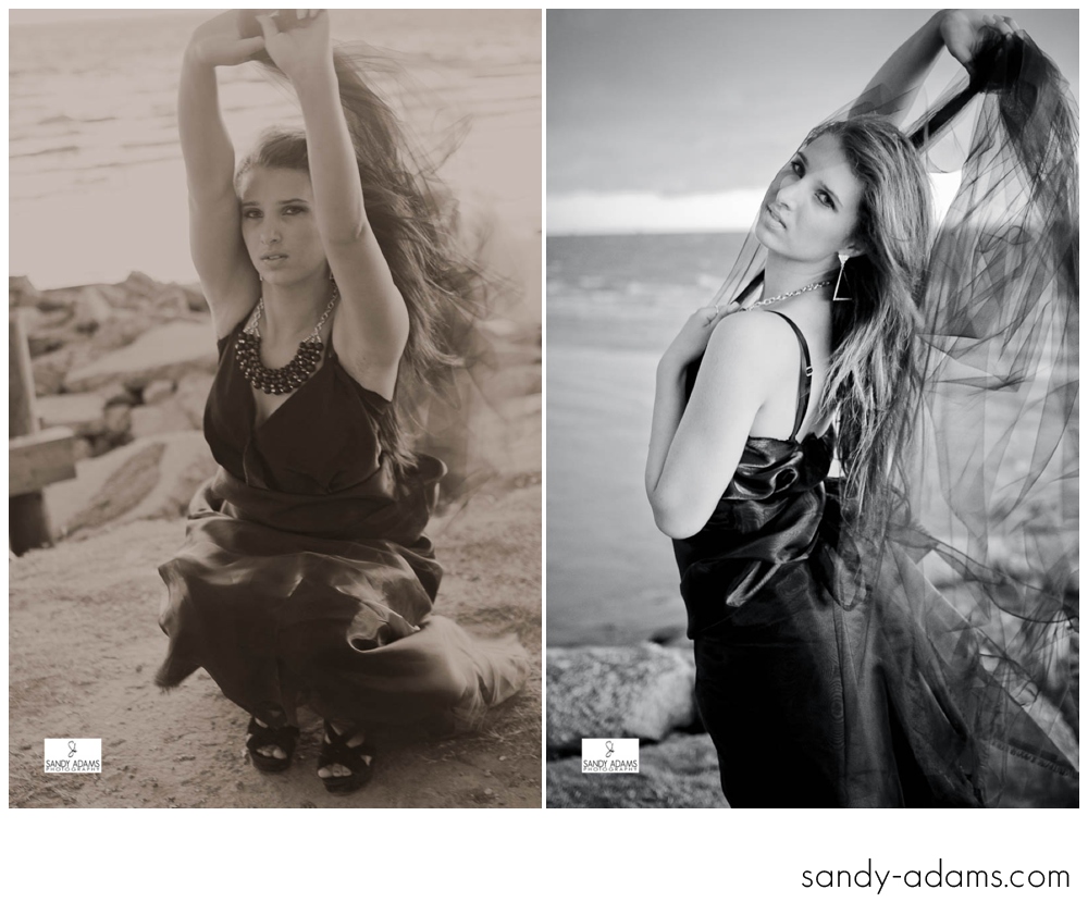 The day started off hot, sunny and very steamy here on the Texas Gulf Coast, but by the time we arrived at the second location site the black storm clouds were quickly moving in and the wind was whipping around. Me worried? Not at all! As long as my client is not in any danger, bad weather can be a great thing. In this case, the black sky was something that totally changed the original intention of the shoot. My model and her mom were totally enthralled with the weather. The mom kept a watch on the rain so I could totally focus on getting the shots before the rain started pouring. We worked quickly and finished up just as the rain drops started falling harder.