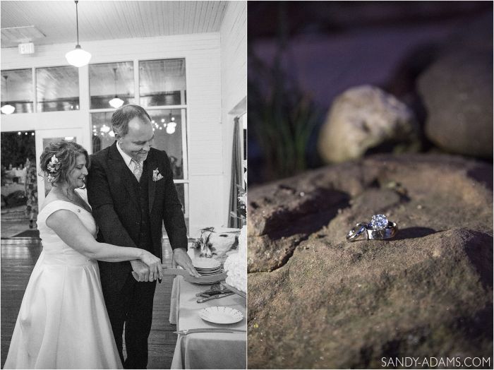 The flower arrangement “vases” on tables (above image) were hand-made by the Groom – melting aluminum and pouring the molten metal down fire ant mounds (see his site www.swordcastingguy.com)