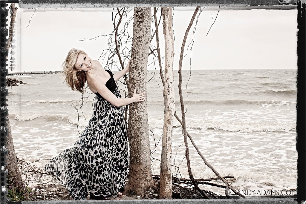 Brooke wanted something totally different and that showed off her independent spirit. The day of the shoot turned out to be just before a huge storm was coming in. I used the high winds as a hair machine to get a great effect for the portrait in not only blowing her hair, but also her dress.