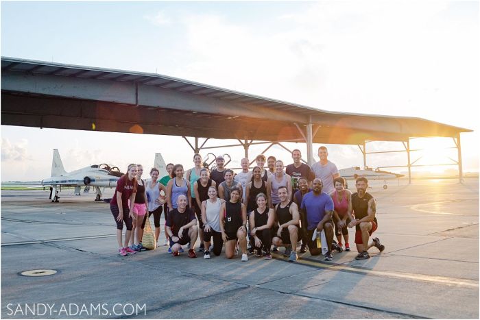 League City and Friendswood photographer, Sandy Adams, photographs NASA employees' fitness workout next to the NASA T-38s jets at Ellington Field...