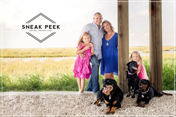 League City family portrait photographer, Sandy Adams, photographs a beautiful family and their three pups on a gorgeous Saturday morning...