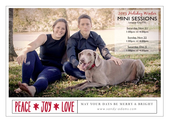 League City and Friendswood photographer, Sandy Adams, announces 2015 Holiday Winter Mini Sessions...