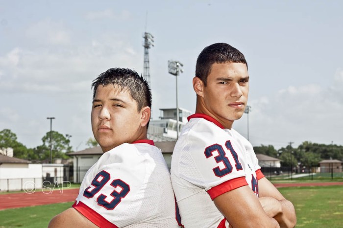 Sandy Adams photographs two cousins for Clear Lake High School football game day program ad...
