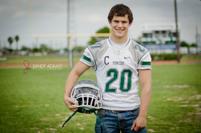 Sandy Adams photographs Lutheran South graduate and newly signed Austin College football player on location...