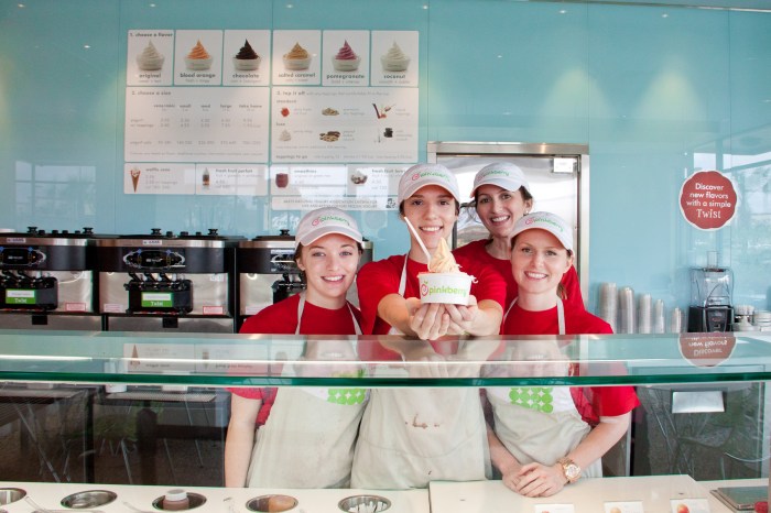 Sandy Adams visits Houston's only Pinkberry store for National Go Red For Women day...